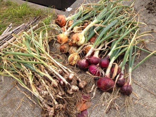今回収穫したのは玉ねぎ、にんにく、かぶ、水菜、メインのじゃがいも!!